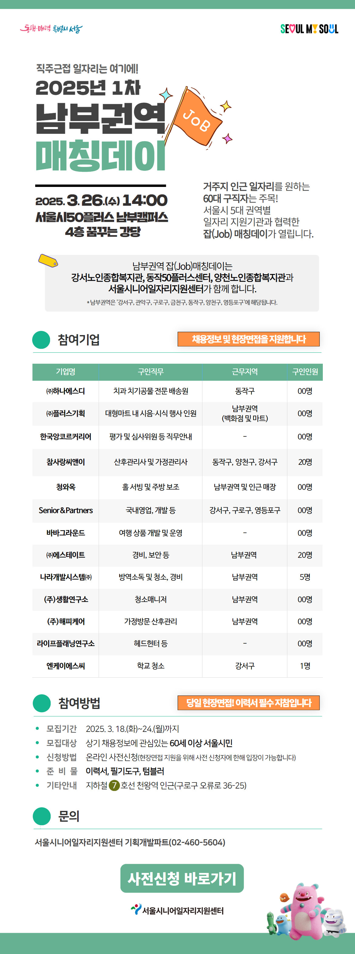 시니어 채용행사 「남부 권역 매칭데이」 참여자 모집