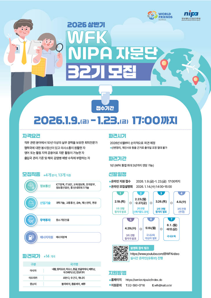 ▶ 지원 방법: 자문단 홈페이지(senior.nipa.kr)를 통한 온라인 지원