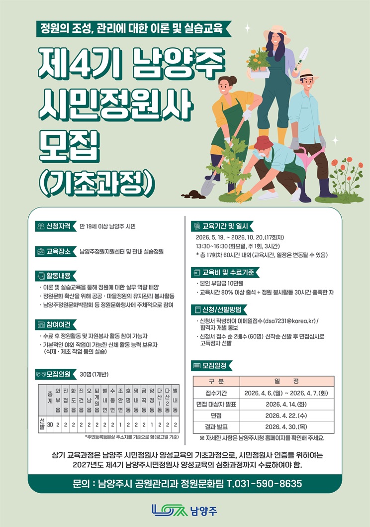 [경기] 제4기 남양주시민정원사 양성교육(기초과정) 교육생 모집