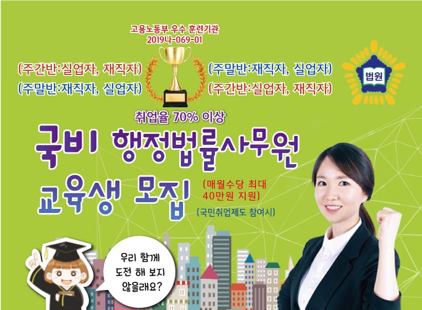 국민법률세무교육원에서 행정법률사무원 과정의 교육생을 모집합니다!