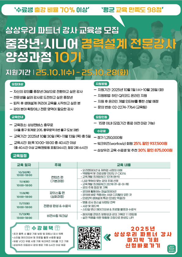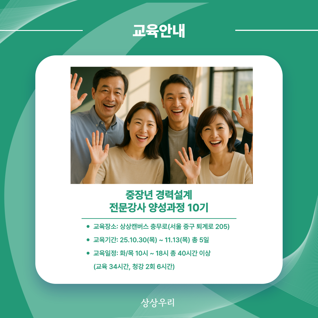 "강사와 회사가 함께 성장하는" 상상우리의 경력설계 전문강사 양성과정 10기를 모집합니다.