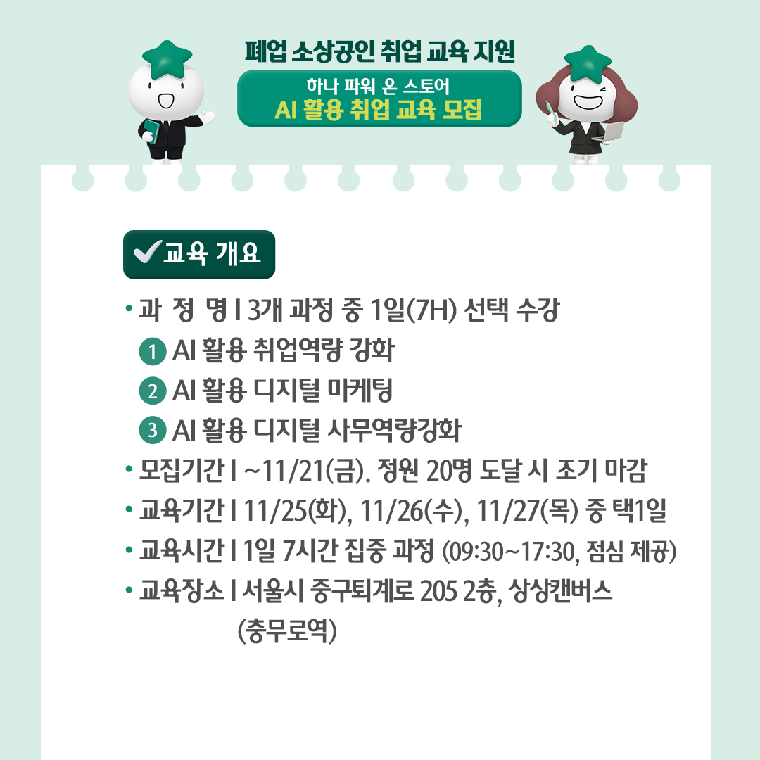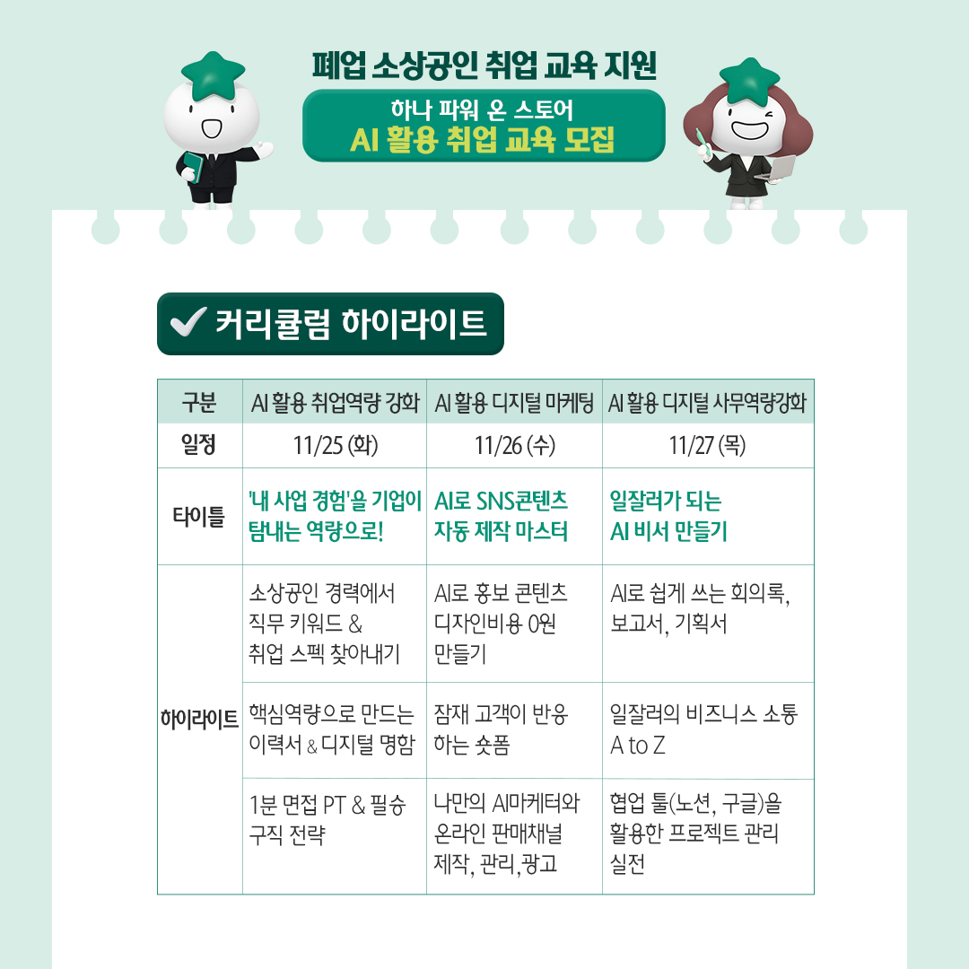 하나은행과 사회연대은행이 지원하는 '2025 폐업 소상공인 취업 교육 지원 사업'은