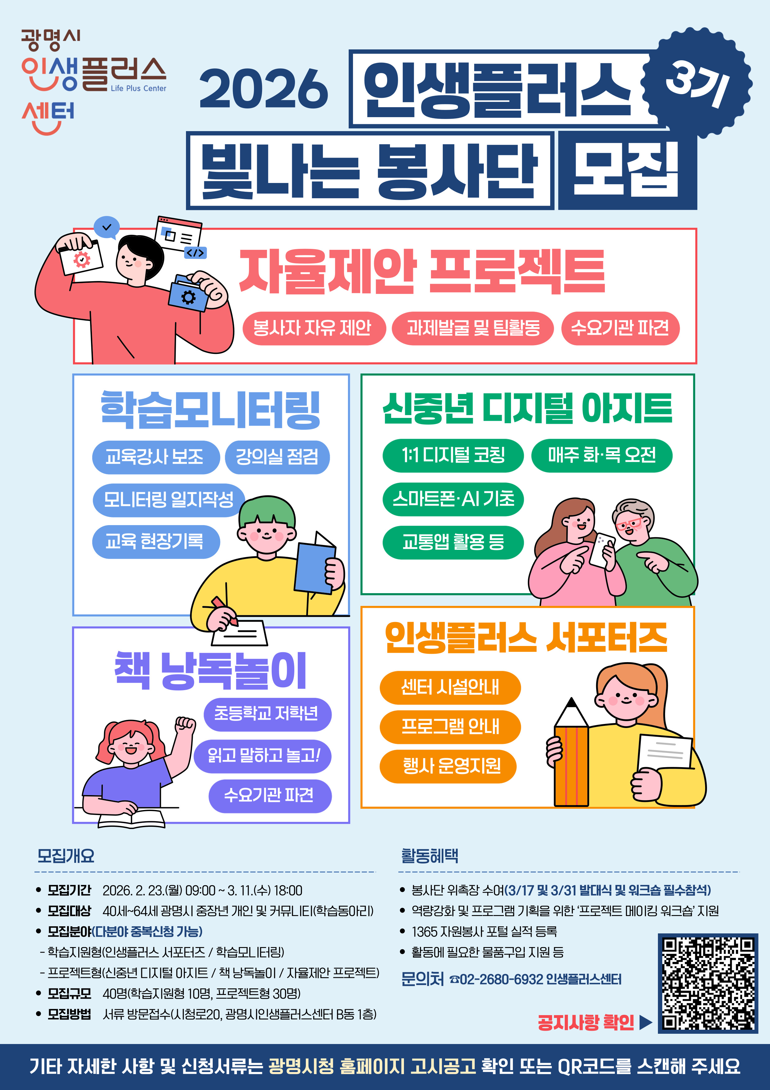 - 방문 접수: 광명시인생플러스센터 B 동 1층 사무실 (경기도 광명시 시청로 20)